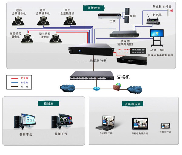 教育錄播系統,能建設成高清全自動導播跟蹤錄播教室,同時可支持300并發用戶的在線直播點播。整個系統集實時直播、點播、導播、課程錄制、視頻互動及教學分析于一體,即能集中管理,又能單獨操控,不影響正常教學秩序,又能夠根據樓宇現有環境施工,嚴格按照校方指定工期完成。